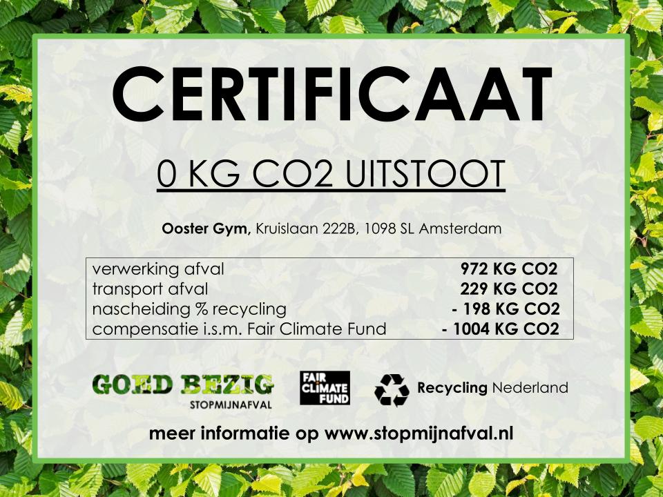 Wij van Oostergym zijn verheugd ons nieuwe certificaat te delen, wat aantoont dat we actief CO2-compensatie integreren voor het transport en de verwerking van ons afval, naast ons partnerschap met Recycling Nederland voor het nascheiden van afval. Hiermee streven we naar een duurzamere aanpak van afvalverwerking, en hopen we bij te dragen aan een schonere toekomst voor ons allen.